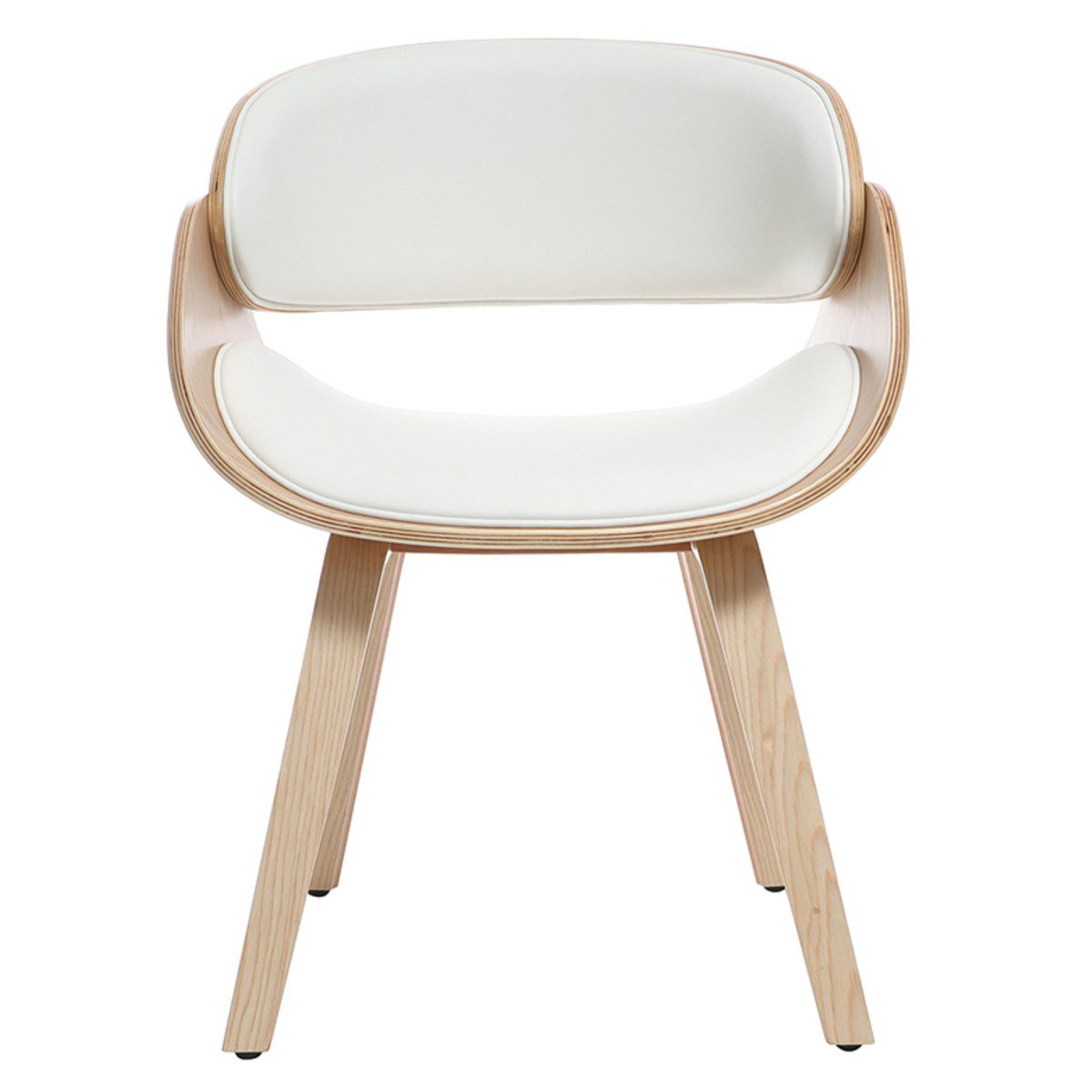 With its Scandi-retro look, the BENT chair effortlessly blends modern minimalism with timeless charm. The frame and backrest are made of light wood, and therefore highlight the natural grain for a warm, authentic finish. In addition, the smooth white faux leather upholstery enhances the chic appearance while also ensuring comfort and durability. As a result, this chair is not only attractive but also highly practical.